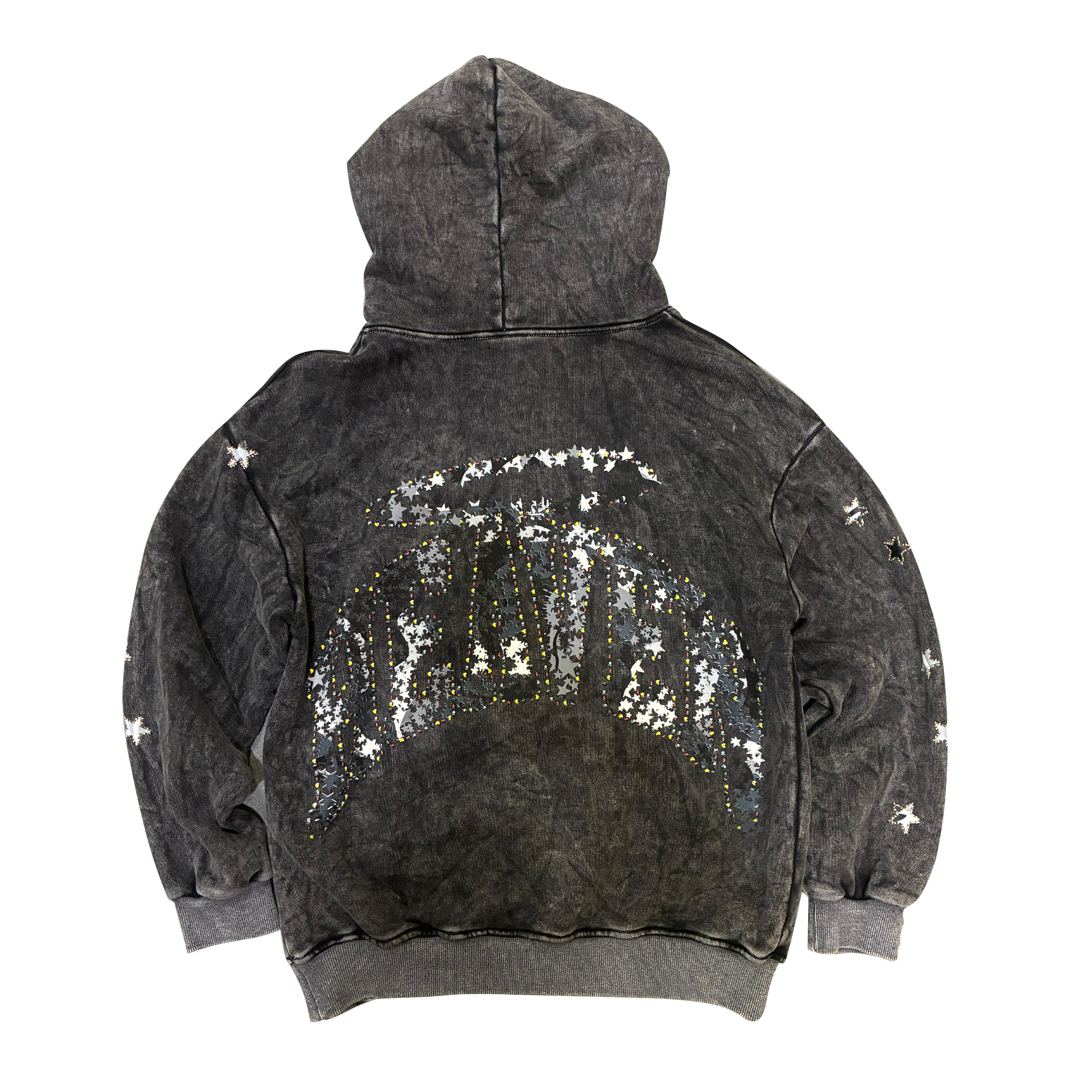 100% Cotton Garment Dyed hoodie with Virgen de Guadalupe & Heaven Arc Logo screen printed graphic.