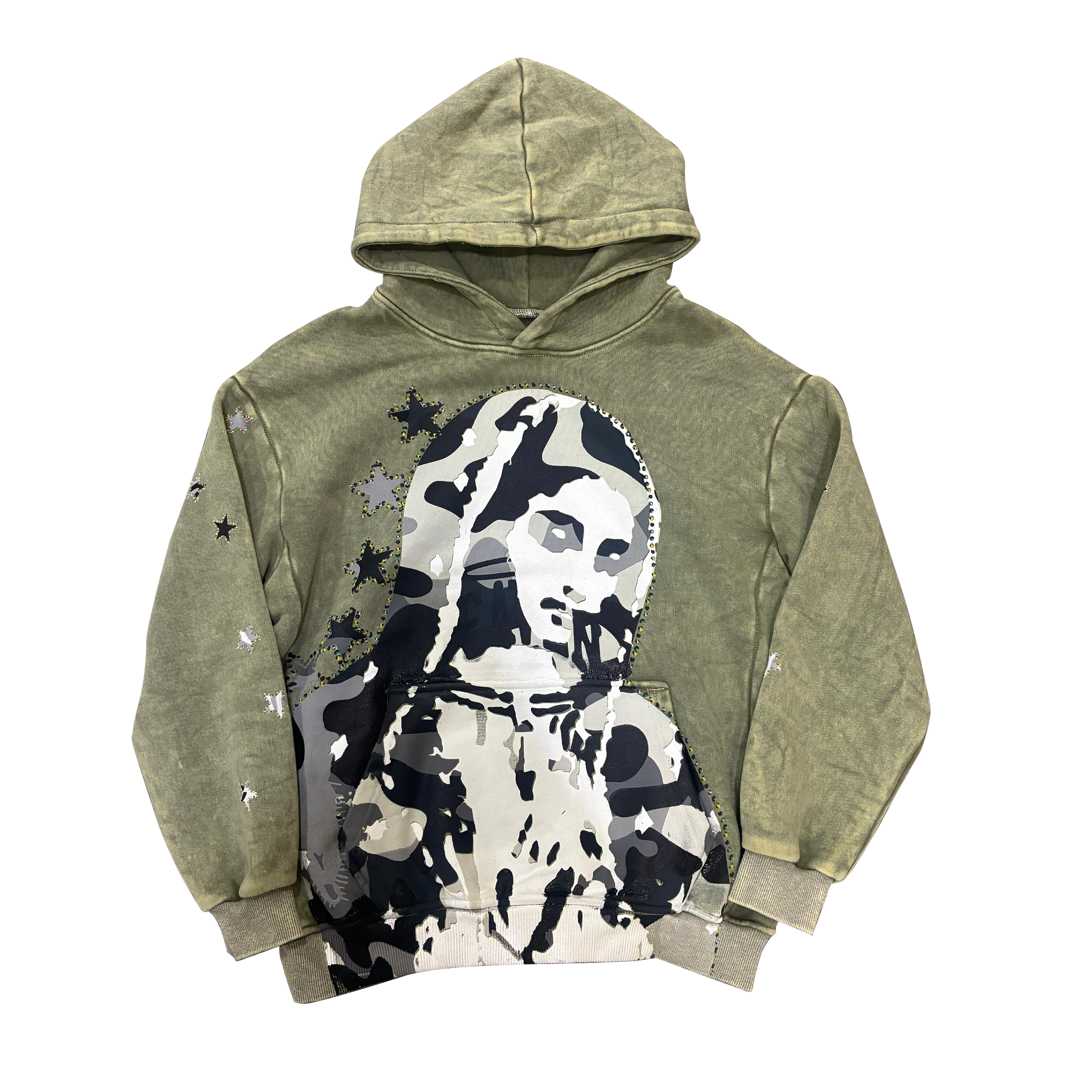 Virgen de Guadalupe Camo Hoodie Green/Black